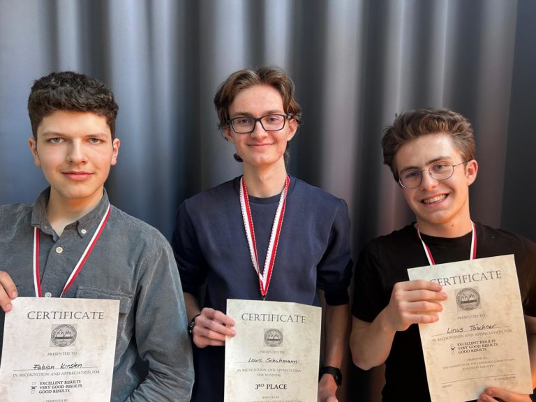 Unsere Schüler Fabian, Louis und Linus au der neunten Klasse haben unsere Schule sehr erfolgreich beim diesjährigen regionalen Englisch-Wettbewerb English in the City 2026 vertreten.